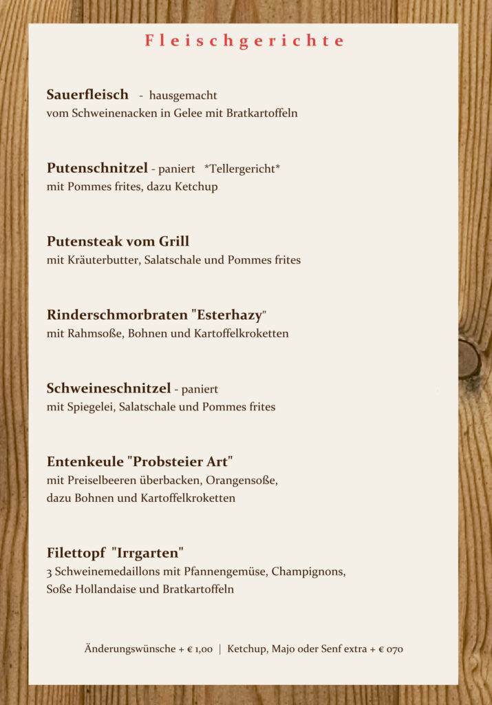 Ein Auszug aus unserer Speisen- und Getränkekarte: